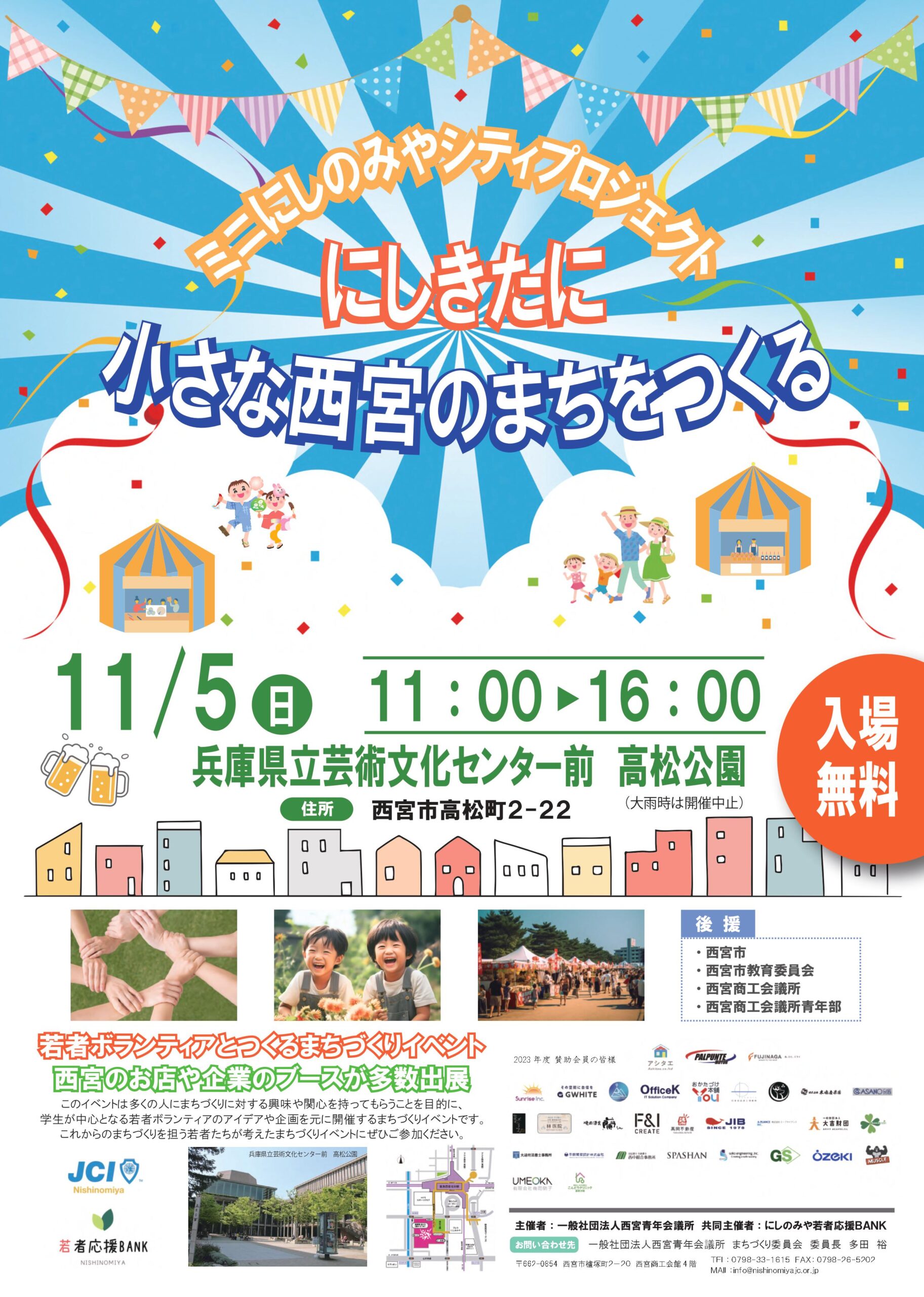 この度一般社団法人西宮青年会議所まちづくり委員会では、「ミニにしのみやシティ プロジェクト~にしきたに、小さな西宮のまちをつくる~」と題しまして、まちづくり事業を開催いたしますのでご案内させていただきます。