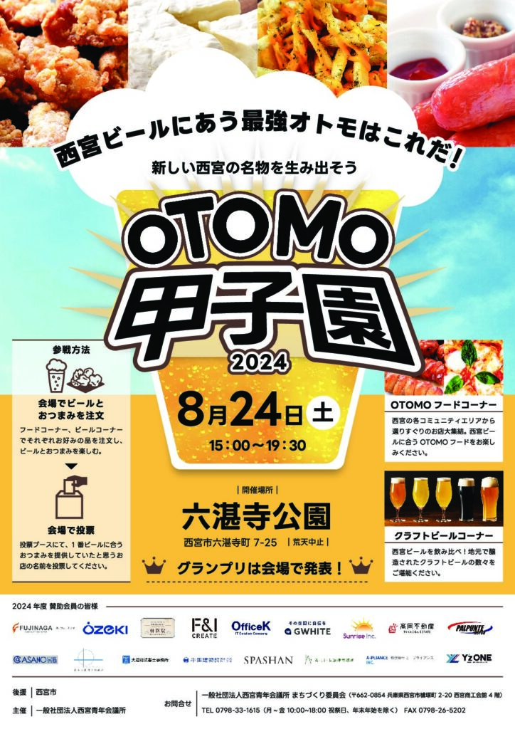 一般社団法人西宮青年会議所は、2024年8月24日(土)に六湛寺公園(南)で、「西宮市100周年(2025年)記念プレ事業 OTOMO甲子園2024~西宮ビールにあう最強オトモはこれだ!~」を開催します。