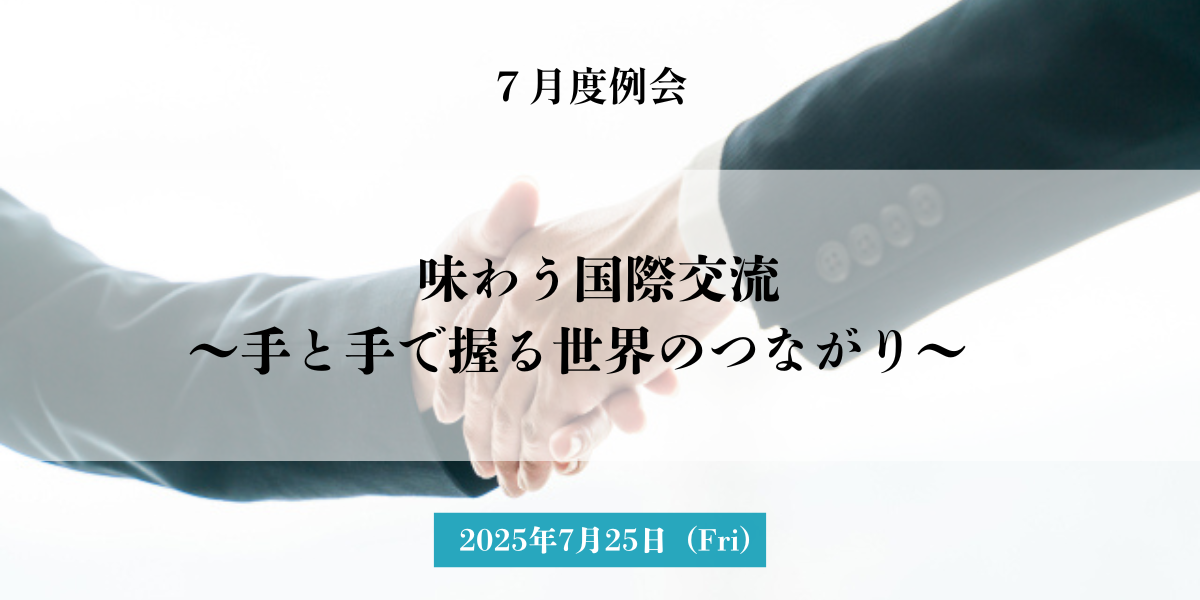 7月度例会「味わう国際交流 〜手と手で握る世界のつながり〜」 開催のお知らせ