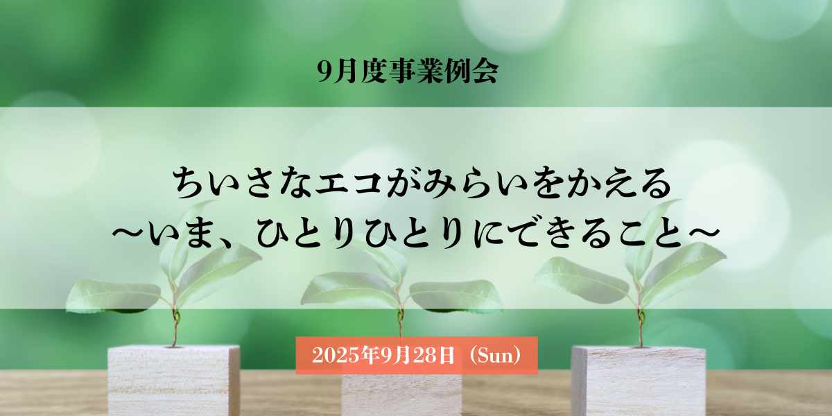 9月度事業例会「ちいさなエコがみらいをかえる~いま、ひとりひとりにできること~」 開催のお知らせ